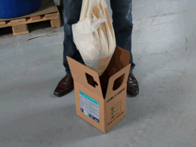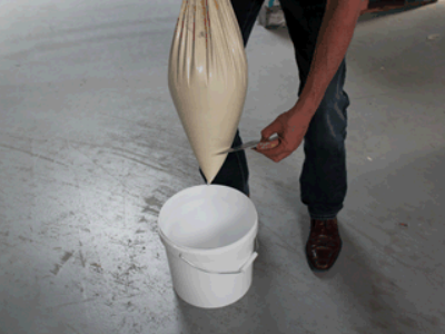 Giet vervolgens de inhoud over op de vloer of in een emmer. Zodra de zak geopend is, adviseren we om het restant in een emmer te bewaren.